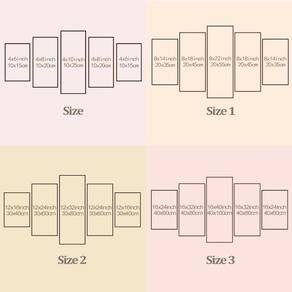 Peças menores: 25x40 cm | Peças médias: 25x51 cm | Peça central: 25x63 cm