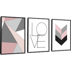 Quadro Decorativo Love Amor Abstratos Geométricos Com Moldura Preto
