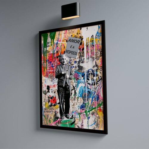 Quadro Decorativo Love Is The Answer QUADRO DECORATIVO LOVE IS THE ANSWER P (60x40) C/ Moldura Preta - -Qualidade Premium (padrão museu)