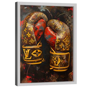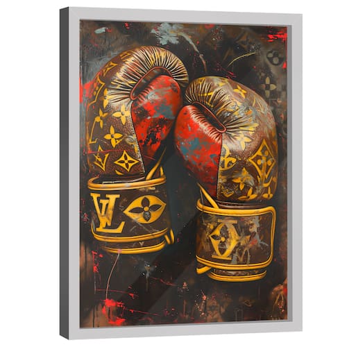 Quadro Decorativo Luva de Boxe Grafite Moldura Branca e Vidro - 150x100cm -