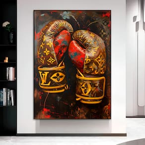Quadro Decorativo Luva de Boxe Grafite Moldura Preta e Vidro - 84x54cm -