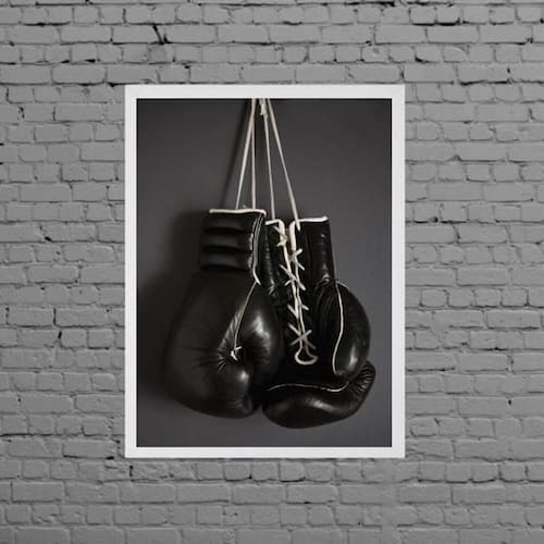 Quadro decorativo luva de boxe preta 33x24cm - com vidro Moldura: madeira preta Informações do produto tire todas as suas dúvidas no descritivo abaixo: decoração para quarto, sala, cozinha, escritório, área gourmet e muito mais. Chega de paredes vazias medidas - cada peça tem 33x24cm a4 . Material do papel - papel fotográfico brilhante de altíssima resolução acabamento - todos os quadros são acompanhados de vidro para proteção da imagem. - moldura em madeira maciça na cor preta e pendurador . - os quadros são embalados de forma segura com plástico bolha com camada dupla de acordo com o tamanho dos quadros. - de 3 meses. Meu quadro chegou. Como posso fixá-lo Você precisa apenas de um martelo e um prego, pois os quadros já vão acompanhados de penduradores. Esta é a forma mais indicada. Como posso limpar meu quadro A limpeza é feita como um móvel comum da sua casa. Apenas um pano seco ou espanador são suficientes para tal