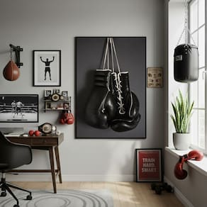 Quadro Decorativo Luvas Pretas De Boxe-70x50cm Mold Branca
