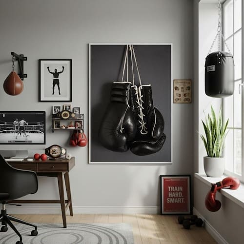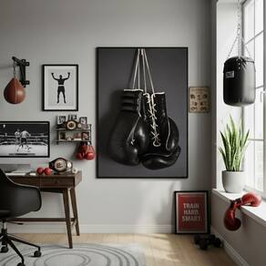 Quadro Decorativo Luvas Pretas De Boxe-70X50Cm Mold Preta