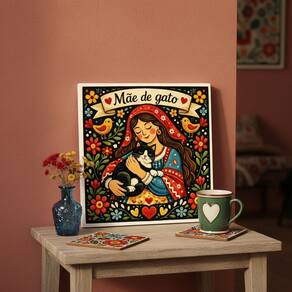 Quadro Decorativo Mãe De Gato 33x33cm Mold Preta Vidro
