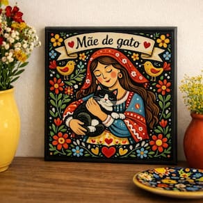Quadro Decorativo Mãe De Gato 33x33cm Mold Preta