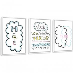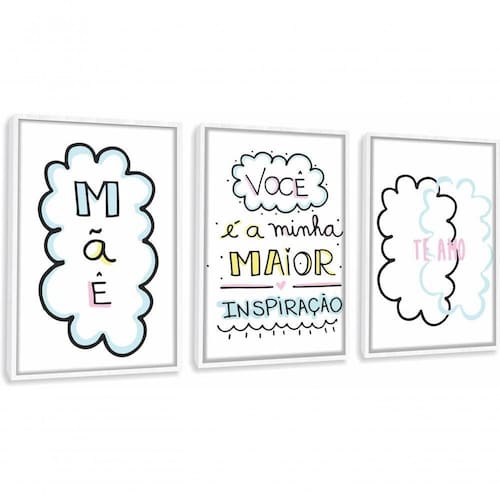 Quadro Decorativo Mãe Te Amo Com Moldura Branco
