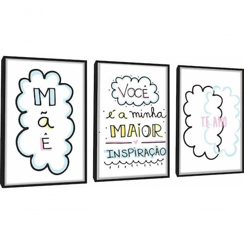 Quadro Decorativo Mãe Te Amo Com Moldura Preto
