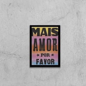 Com o Quadro Decorativo da Quadros On-Line você transforma a decoração do seu ambiente, com beleza e bom gosto. Preencha aquela parede vazia com um quadro de alta qualidade, papel fotográfico brilhante de altíssima resolução e moldura em madeira maciça. Para maior proteção, a peça ainda conta com uma película de acetato. Características: - Papel fotográfico brilhante de altíssima resolução - Película de acetato para proteção da imagem - Moldura em madeira maciça - Pendurador móvel que pode ser retirado facilmente - Pode ser fixado com fita dupla face Especificações técnicas Marca: Quadros On-Line Modelo: Mais Amor Por Favor Material: Papel fotográfico brilhante Acabamento: Película de acetato Moldura: Madeira Cor moldura: Preto Tamanho: 45 x 34 cm - A3 Fixação: Prego ou fita dupla face de alta qualidade Acompanha pendurador: Sim : 3 meses Dica de limpeza A limpeza é feita como um móvel comum da sua casa. Apenas um pano seco ou espanador são suficientes para tal.
