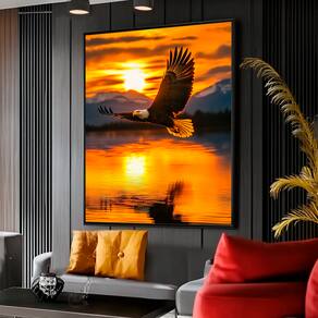 Quadro Decorativo Majestosa Águia Moldura Dourada - 84x54cm -