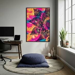 Quadro Decorativo Mandala - 70x50cm - Cor: Moldura Preta