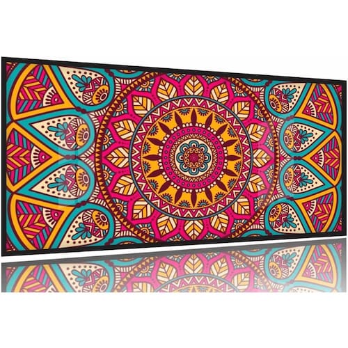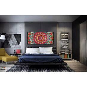 Quadro Decorativo Mandala Rosa 130x60 Moldura Preta 2x2