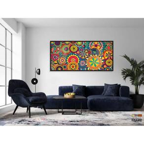 Quadro Decorativo Mandalas Coloridas 130x60 Moldura Preta 2x2