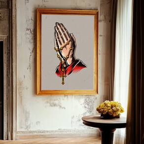Quadro Decorativo Mãos de Oração Moldura Dourada - 60x40cm -