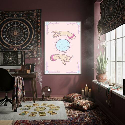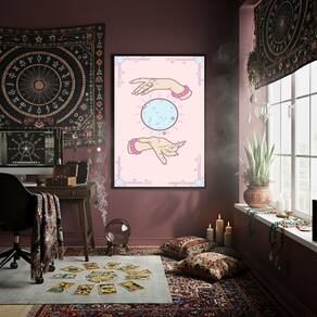 Quadro Decorativo Mãos Lendo Bola de Cristal - 70x50cm - Cor: Moldura Branca