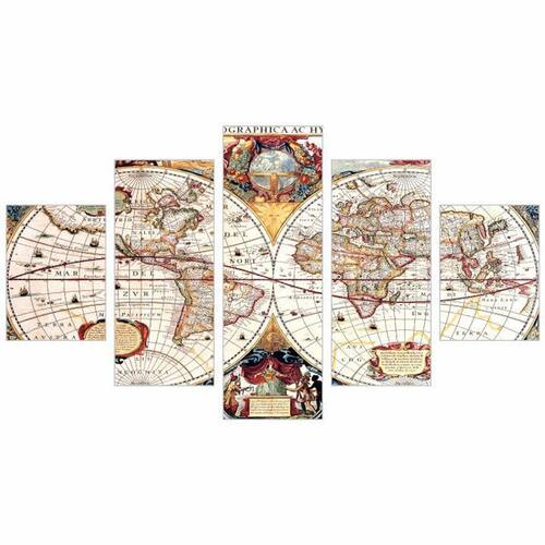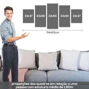 Quadros Decorativos são uma excelente opção para transformar ambientes monótonos em locais alegres, confortáveis e aconchegantes. O Quadro Decorativo Mapa Mundi Antigo é formado por 5 peças de três tamanhos diferentes que se complementam e, ao serem instaladas lado a lado, formam um lindo desenho. O Quadro é produzido em tecido sintético semi brilho, com impressão de alta qualidade e durabilidade. Aplicado em madeira pinus de reflorestamento tratada com espessura de 2,5cm, suas bordas são a extensão da própria imagem nas laterais, assim, não é necessário o uso de molduras para dar o acabamento. Características: - Tecido esticado sobre o chassi de madeira e pregado no verso - Não necessita de moldura - Impresso em tecido sintético semi brilho - Composto por 5 telas que se complementam Composição: 05 Quadros com tamanho total de 114 x 65 cm Peças menores: 02 unidades - 22 x 30 cm Peças médias: 02 unidades - 22 x 50 cm Peça central: 01 unidade - 22 x 65 cm Espaçamento sugerido entre as peças: 2,5 cm Especificações Técnicas Produto: Quadro decorativo Quantidade: 5 peças Material: Madeira e tecido sintético Tamanho total CxA : 114 x 65 cm Espessura: 2,5cm Tema: Mapa Mundi Antigo Ideal para: Escritórios, sala, hall e demais ambientes Conteúdo da embalagem: 1 quadro composto por 5 peças Formas de Instalação: Para a instalação correta dos quadros, é necessário deixar um espaçamento de aproximadamente 2,5cm entre as peças. A instalação é simples e pode ser feita com pregos, parafuso e bucha ou fita dupla face. Todos irão manter os quadros bem fixos na parede. Limpeza e Manutenção: Para limpeza, utilize apenas um espanador ou um pano umedecido com água, sem produtos químicos, isso irá garantir também a durabilidade do produto. Ean: 7908157749496