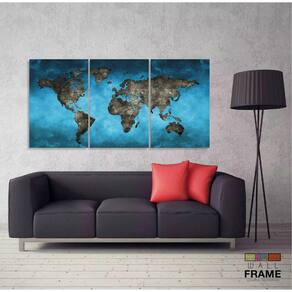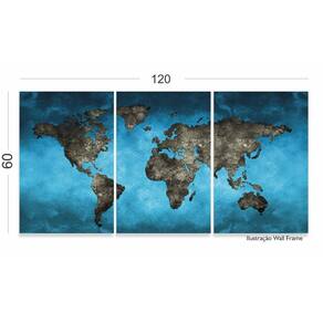 Quadro decorativo Mapa Mundi Azul Mosaico 3Peças 120x60