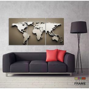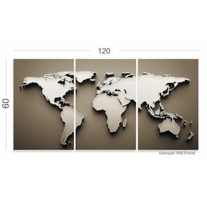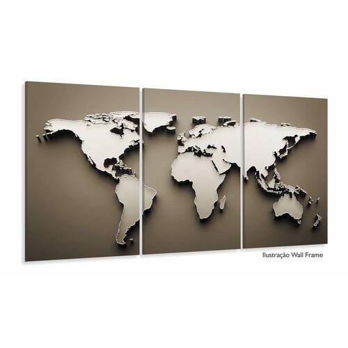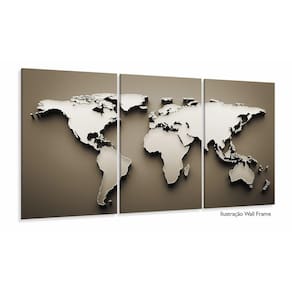 Quadro Decorativo Mapa Mundi Estilo Militar Mosaico 3 peças