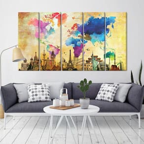 Quadro Decorativo Mapa Mundi Global Dark 140x65 em tecido
