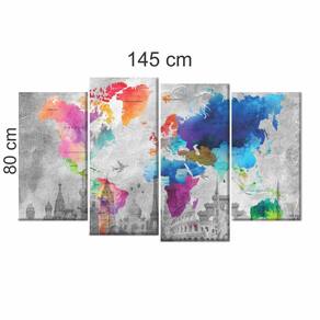 Quadro Decorativo Mapa Mundi Global Dark 145x80 em tecido 2