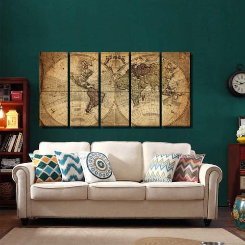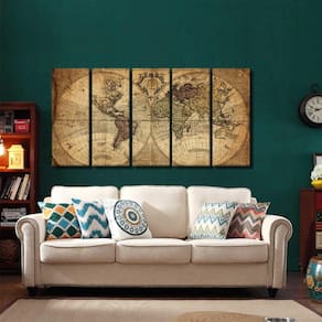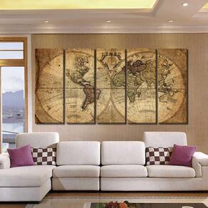 Quadro Decorativo Mapa Mundi Retro 140x65 em tecido