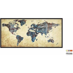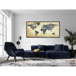 Quadro decorativo Mapa Mundi Vintage e 130x60 Moldura Preta 2x2