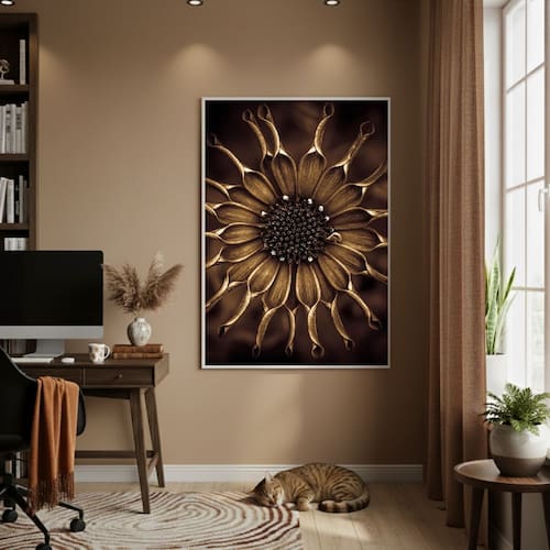 Quadro Decorativo Margarida Bronze 70x50cm Mold Branca