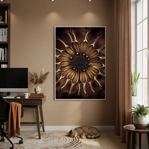 Quadro Decorativo Margarida Bronze 70x50cm Mold Preta