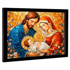 Quadro Decorativo Maria, José e Jesus em Mosaico Borda Infinita - 118x78cm -