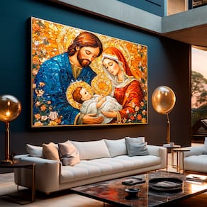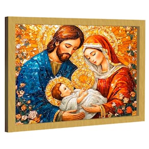 Quadro Decorativo Maria, José e Jesus em Mosaico Moldura Dourada - 60x40cm -