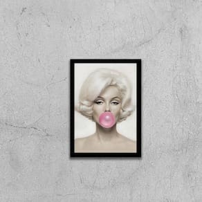 Quadro Decorativo Marilyn Monroe Chicletes - Tamanho: A4 (20 x 30) / Acabamento: Película de acetato / Moldura: Madeira preta
