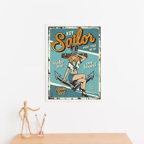Quadro decorativo marinheira vintage 33x24cm - com vidro