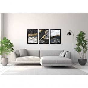 Quadro Decorativo Mármore Abstrato Com Moldura Preto