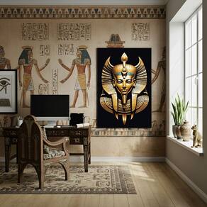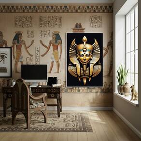 Quadro Decorativo Máscara De Tutancâmon 70x50cm Mold Preta