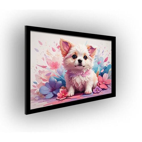 Quadro Decorativo MDF 20x28 c/ Moldura Cachorrinho - Moldura: Preta