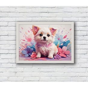 Quadro Decorativo MDF 20x28 c/ Moldura Cachorrinho - Moldura: Branca