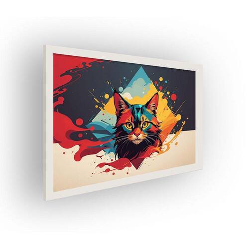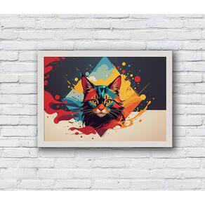 Quadro Decorativo MDF 20x28 c/ Moldura Color Splash Cat - Moldura: Branca