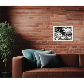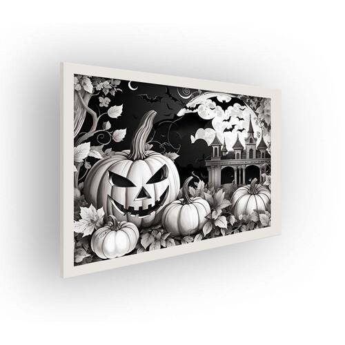 Quadro Decorativo MDF 20x28 c/ Moldura Halloween Pumpkins Gray - Moldura: Branca