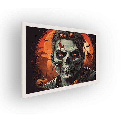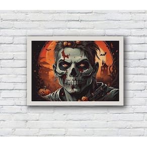 Quadro Decorativo MDF 20x28 c/ Moldura Halloween Zombie - Moldura: Branca
