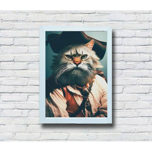 Seu espaço merece a qualidade premium do nosso quadro decorativo feito em MDF. Com opções de moldura ou sem moldura, e com impressão de alta qualidade, você desfrutará de cores vibrantes e arte exclusiva no "Gato Pirata".