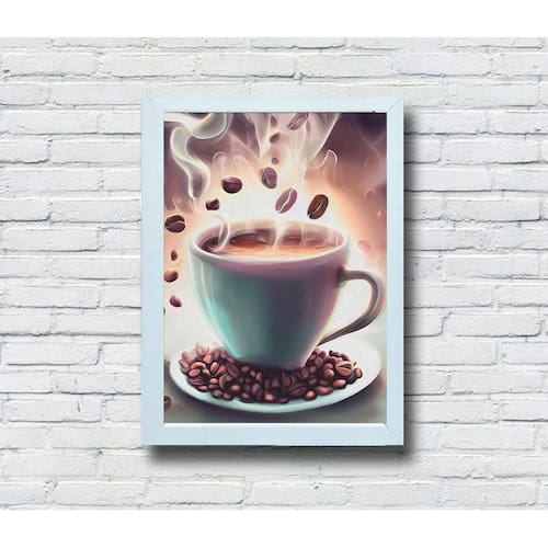 Seu espaço merece a qualidade premium do nosso quadro decorativo feito em MDF. Com opções de moldura ou sem moldura, e com impressão de alta qualidade, você desfrutará de cores vibrantes e arte exclusiva na "Hora do Café".
