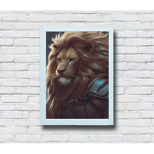 Crie um ambiente único com nossos quadros decorativos feitos em MDF de alta qualidade. Escolha entre a opção com moldura ou sem moldura e deixe a impressão impecável destacar cores vibrantes e arte exclusiva em cada peça do "Leão Guerreiro".