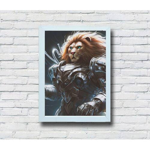 Crie um ambiente único com nossos quadros decorativos feitos em MDF de alta qualidade. Escolha entre a opção com moldura ou sem moldura e deixe a impressão impecável destacar cores vibrantes e arte exclusiva em cada peça do "Leão Guerreiro".
