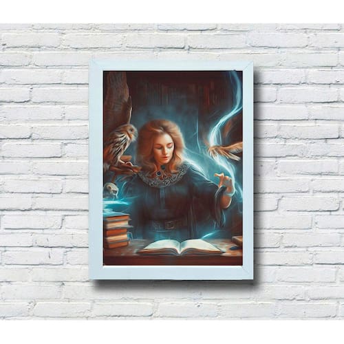 Deixe sua decoração falar volumes com nossos quadros decorativos feitos em MDF de alta qualidade. A impressão impecável intensifica as cores vibrantes e a arte exclusiva da "Mulher Feiticeira", com opções de moldura ou sem moldura.