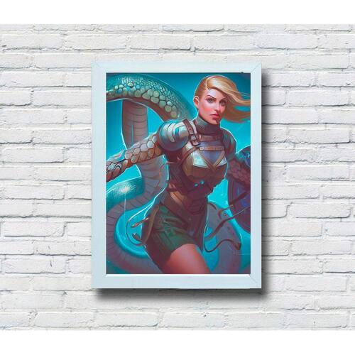 Adicione personalidade à sua casa com nossos quadros decorativos feitos em MDF. Com opções de moldura ou sem moldura, a impressão de alta qualidade garante cores vibrantes e arte exclusiva que se destacam na "Guerreira Serpente".
