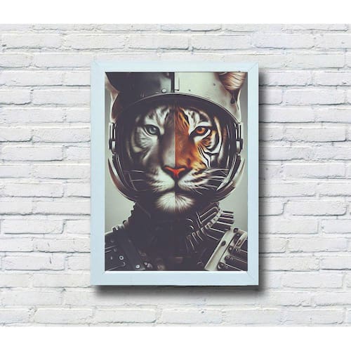 Aproveite a qualidade excepcional do nosso quadro decorativo feito em MDF para criar um ambiente inspirador. Com opções de moldura ou sem moldura, veja como as cores vibrantes e a arte exclusiva do "Tiger Robocop" são aprimoradas pela impressão de alta qualidade.