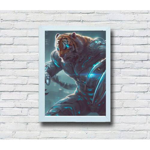Celebre a estética requintada com nosso quadro decorativo de alta qualidade feito em MDF. Escolha entre moldura ou sem moldura, e veja como a impressão premium intensifica as cores vibrantes e a arte exclusiva do "Tigre Guerreiro".