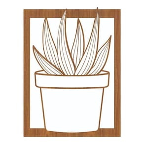 Quadro Decorativo Mdf Carvalho Vaso De Suculenta 40X20Cm