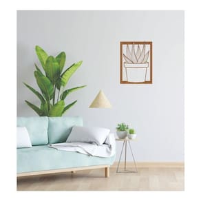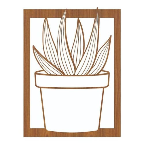 Quadro Decorativo Mdf Carvalho Vaso De Suculenta 40X20Cm