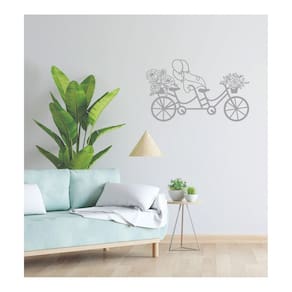 Quadro Decorativo Mdf Cinza Bicicleta Floral 40X20Cm